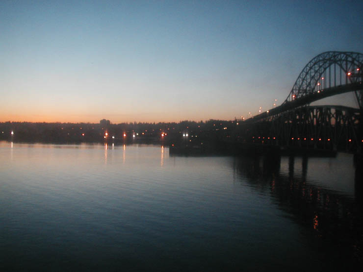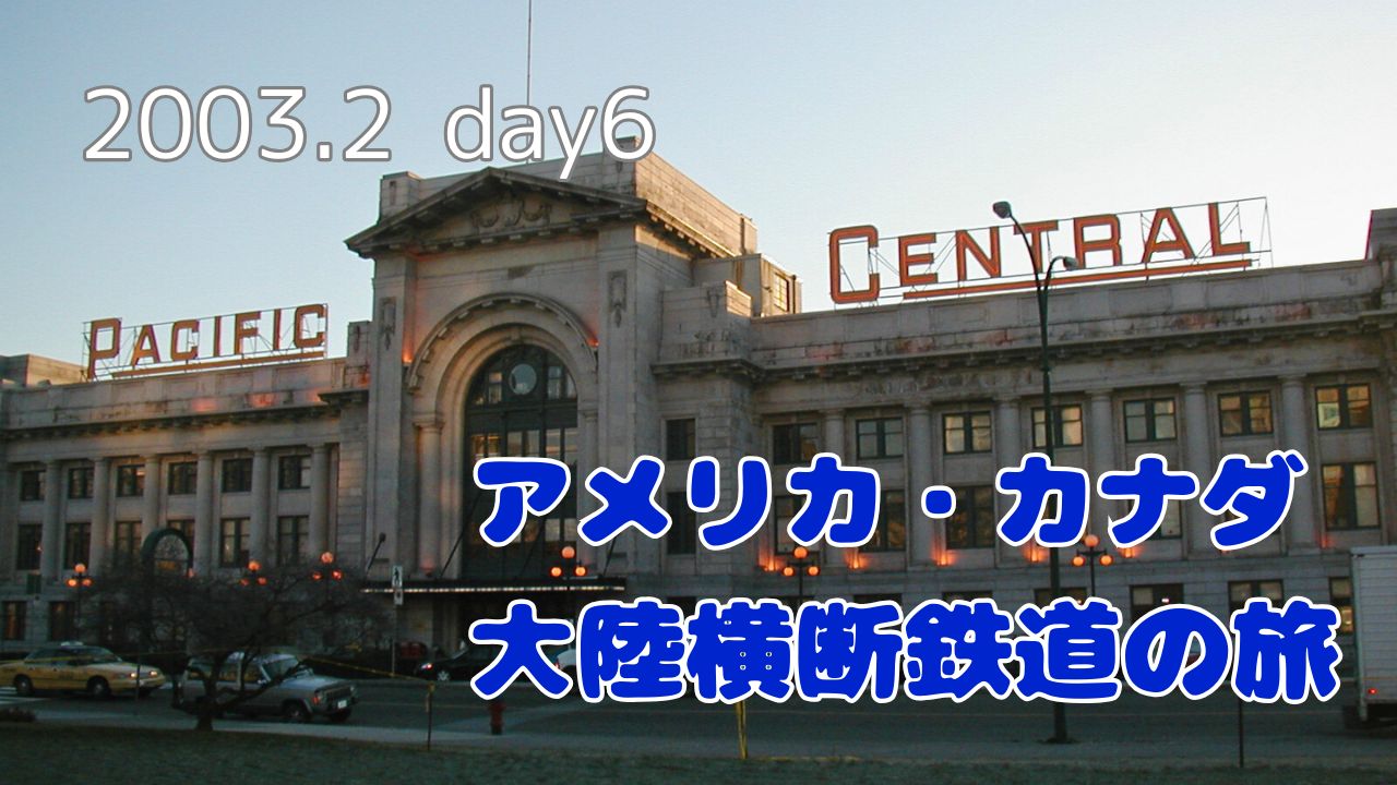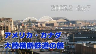 その後、荷物をまとめていつでも下りられる準備をし、パークカーへ行く。ここで2度目の朝食。クロワッサンとオレンジジュース。外はだいぶ開けて来て、バンクーバが近いことを伺わせる。昨日のスウェーデンの兄ちゃんも来た。他の人達も続々とパークカーに集まってくる。そのうち、バンクーバの新交通システムである、スカイトレインが併走してくるようになり、都心が近いことがわかる。長い橋を渡り、列車はスイッチバックの場所へと向かう。この辺りで部屋に戻る。予定より20分早く到着。チップを忘れずに洗面台に置き、下車。