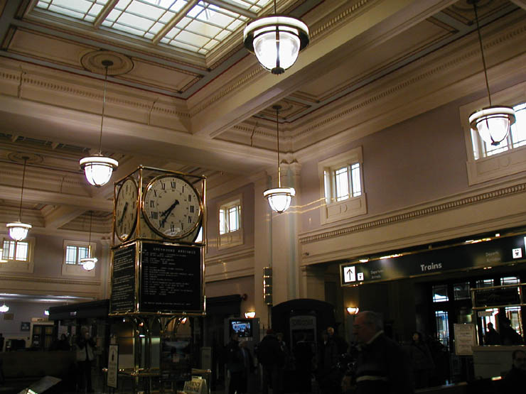 加減速もそれなりにあるので、あっという間にウォーターフロント駅に到着。ここにはTourist Infoつまり観光案内所がある。しかし、まだ来るのが早く、開店まで15分程度時間があった。が、そのまま待つことに。目の前には直ぐにバラード入江が広がっており、時折、水上飛行機が発着したりしている。そして、水上にはエッソとシェルのガソリンスタンドが!そのうち観光案内所が開く。ここの案内所、実は日本人の人もいるという噂だったのだが、生憎今日は非番のようで、英語でコインロッカーの位置を訊くことに。ついでに郵便局の位置も訊いてみる。しかし、コインロッカーはなんとパシフィックセントラル駅にしか無いという。お姉ちゃんはしきりに、ココだけど分かる?みたいな雰囲気だったけど、そりゃ、分かるさ…。ともかく、コインロッカーの無さには苦しんだ今回の旅行だから、コインロッカーが存在するだけでも感謝しなくてはいけない。そんな気持ちで観光案内所を後にする。