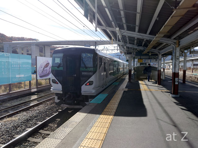 臨時あずさはE257系。昔のあずさを彷彿とさせる出で立ち。10:38発。空いていると踏んでいたのだが、実際は満席。デッキにも人がいたので立席特急券も発売されていたようだ。