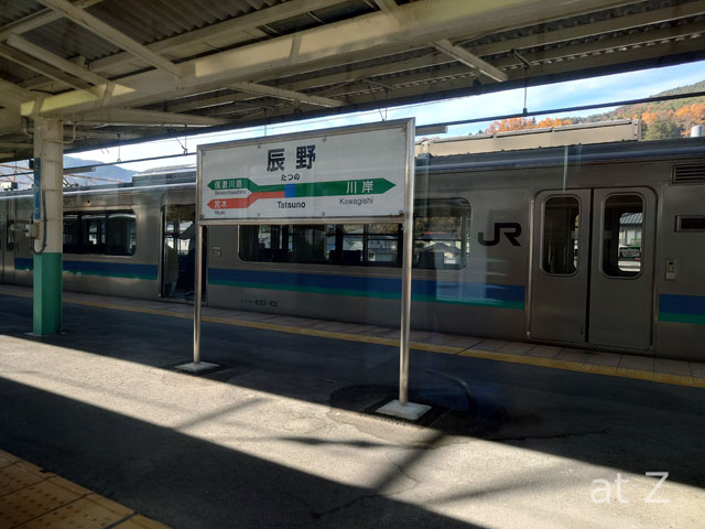 久々のあずさだったので車窓も面白く、寝るつもりが結構起きていた。ただ塩山を過ぎたあたりから記憶が無い。気づいたら茅野だった感じ。茅野では上りが遅れているということで少々停車し、最終的に岡谷駅には3分遅れで到着した。