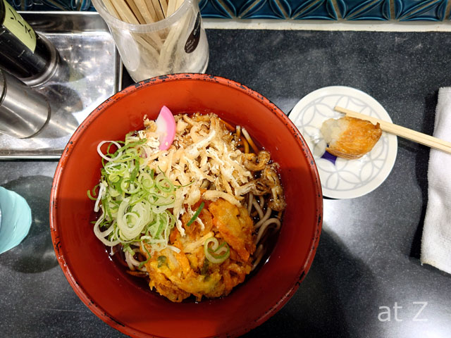 豊橋駅到着。トイレを済ませて途中下車。壺屋の駅そばをいただく。かき揚げそばだが、きざみ油揚げが乗っているのが特徴。サクッと頂く。