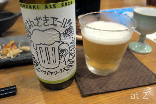 飲み物も地ビールのはんざきエール、地酒から、辻本店の御前酒、桑原酒場の扶桑鶴をいただく。ほかにも飲み物メニューはワインから日本酒から焼酎からとても潤沢。