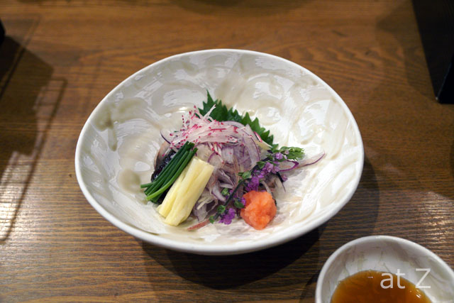 造里  もどり鰹のたたき ちり酢 赤玉葱 黄ニラ 茗荷 穂紫蘇 大葉