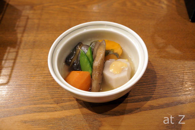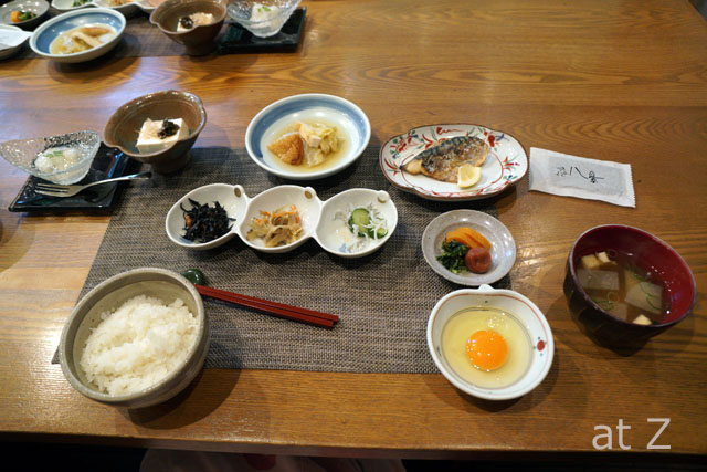 料理に力を入れている宿、ということで、それぞれが丁寧に作られているというのがよくわかる。食材の種類も大変に豊富で、ホームページによると、夕食と朝食合せて50種類以上の野菜が使われているとのこと。特に焚き合せは相当力を入れているということで優しいお出汁の味を楽しむことができる。今回楽しみにしていた松茸の土瓶蒸しもとてもおいしく、最後まで十分楽しめる夕食であった。