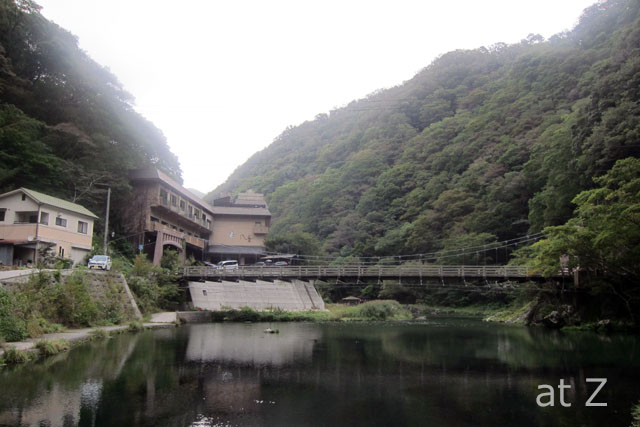 道は多少狭いが気にせず進むと最後吊り橋があり、そこを渡ると八景の敷地となる。駐車場は宿の目の前にある。16:30頃到着したが、まだ数台止められる状況だった。