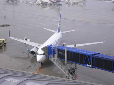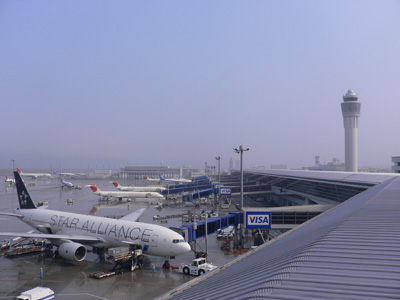 国内線ターミナルと管制塔。ANAスタアラ塗装の777がいた。