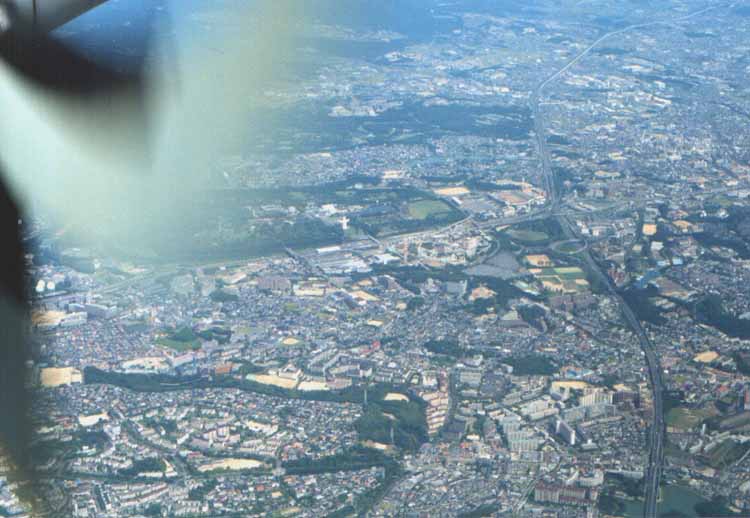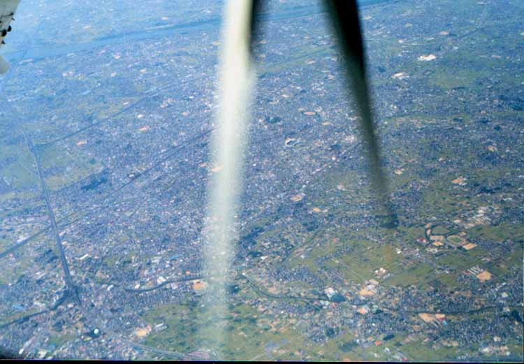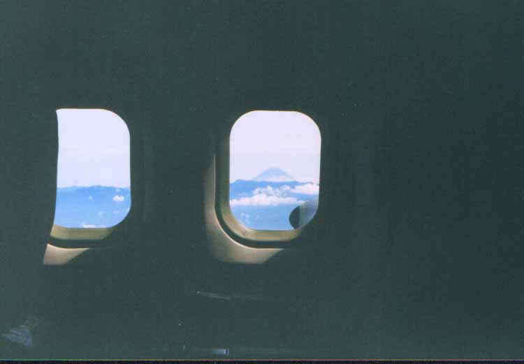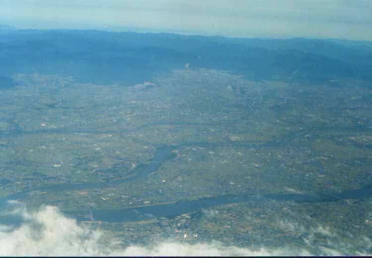 先ほど屋上から見ていた滑走路からストップすることなく加速。それなりにGを感じつつ、テイクオフ。アナウンスが始まり、YS-11の性能が簡単に紹介される。高度4000m、対気速度450km/hだそうで。そういえば、この対気速度、やはりピトー管を使って測定しているのだろうか^^;。伊丹をぐるっと旋回して、どんどん景気がミニチュア化していく。ベルトサインが消えるまではすることがないので、機内誌を読んでこれからのルートを確認しておく。そのうち、安定飛行に移るとCAがJACのルートマップを配り始めた。座っている座席がプロペラの隣で、主翼にじゃまされせっかくのYS-11の景色がみえないので、2Aに移動させていただく。そして、そのルートマップをみる。それによると、松本へは伊勢湾上空から河和VORTACを通過して木曽谷または伊那谷上空を通過していくというもの。しかし、海の上に出る気配はなく、どうもショートカットしている様子。東海北陸道の一宮JCTが見えたりする。そのうち、名古屋上空に達したとのアナウンス。それから中津川に向かって飛び始める。このあたりはあきれるくらいゴルフ場が多い。木曽川にそって北へと向けていく。右手には中央アルプス、左手には北アルプスが聳える。御岳も確認して、CAの放送によって「富士山が右手に見える」という案内がある。いつも見えるのか知らないが、反対側の窓から富士山を望むことができた。考えてみれば、富士山を見るのも久しぶりだ。観光案内ではないが、結構、機窓(?)の説明があるのには感心する。観光客が多いからだろうか。特急伊那路みたいだ。